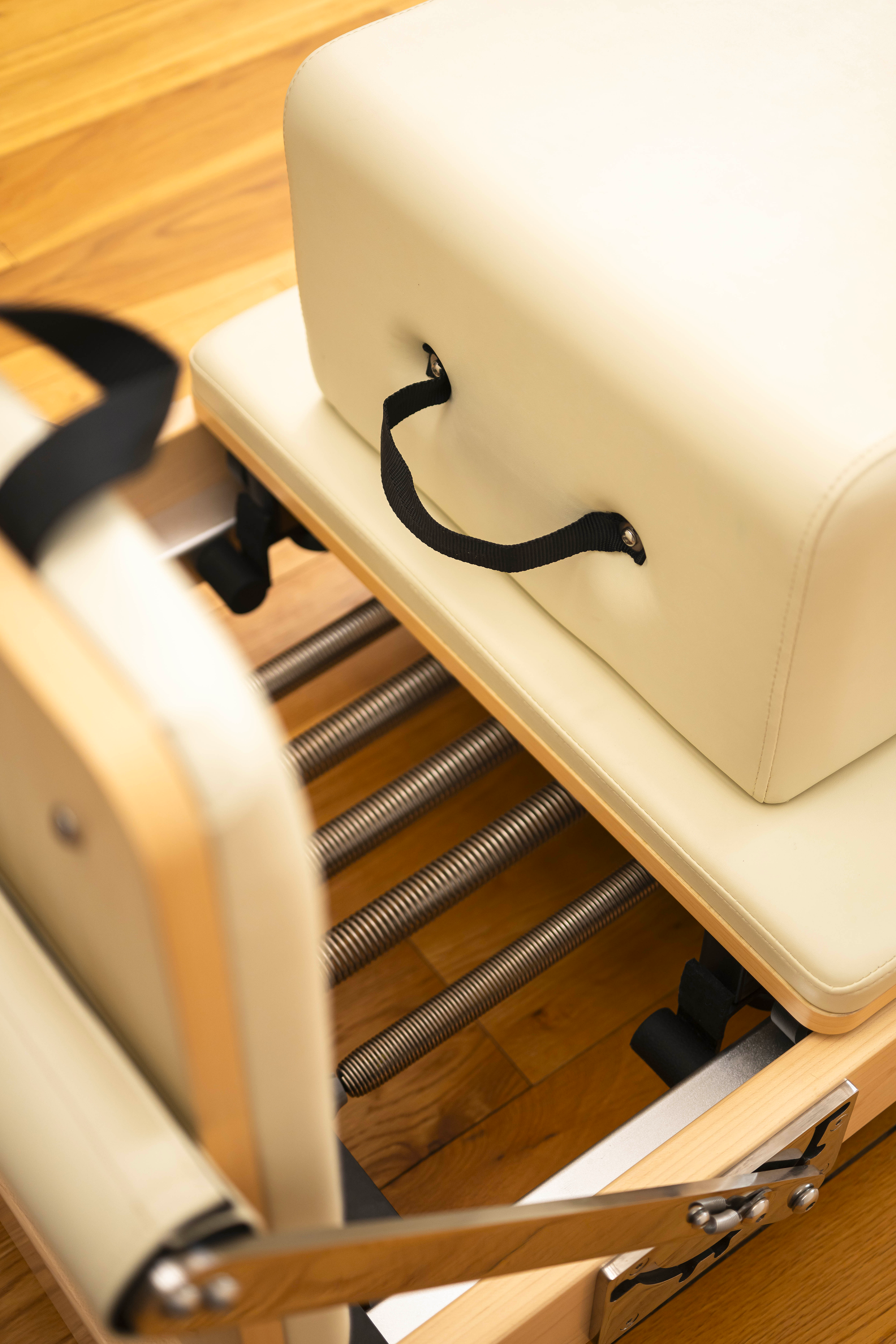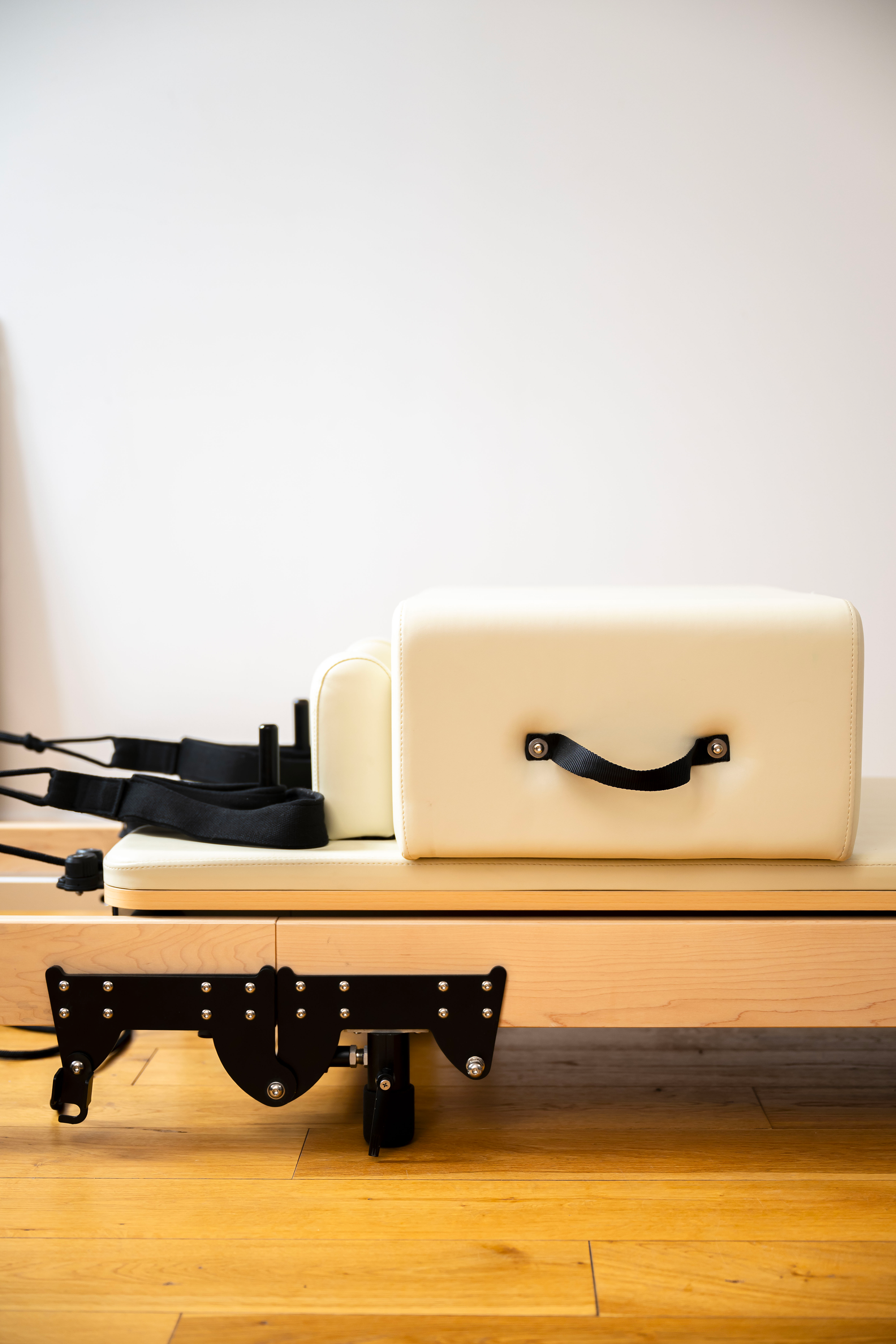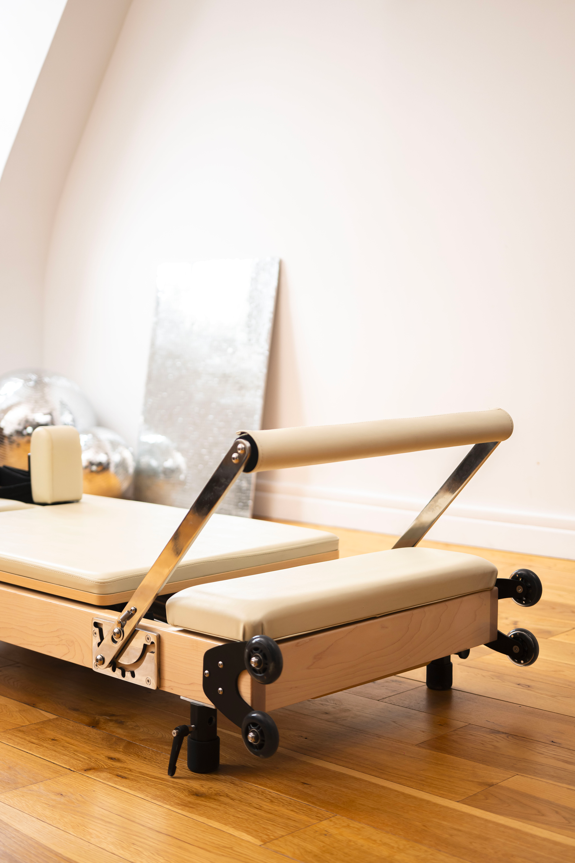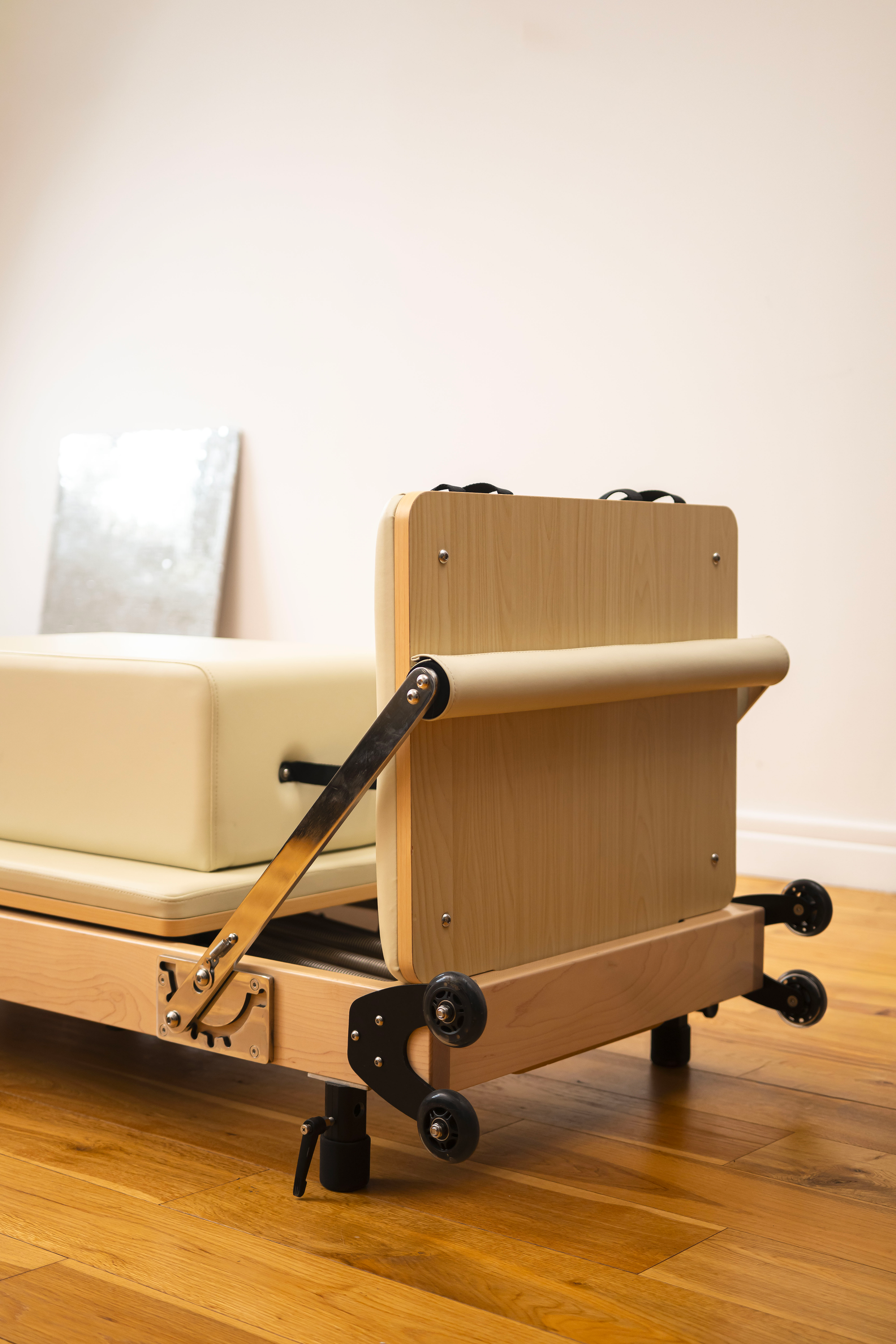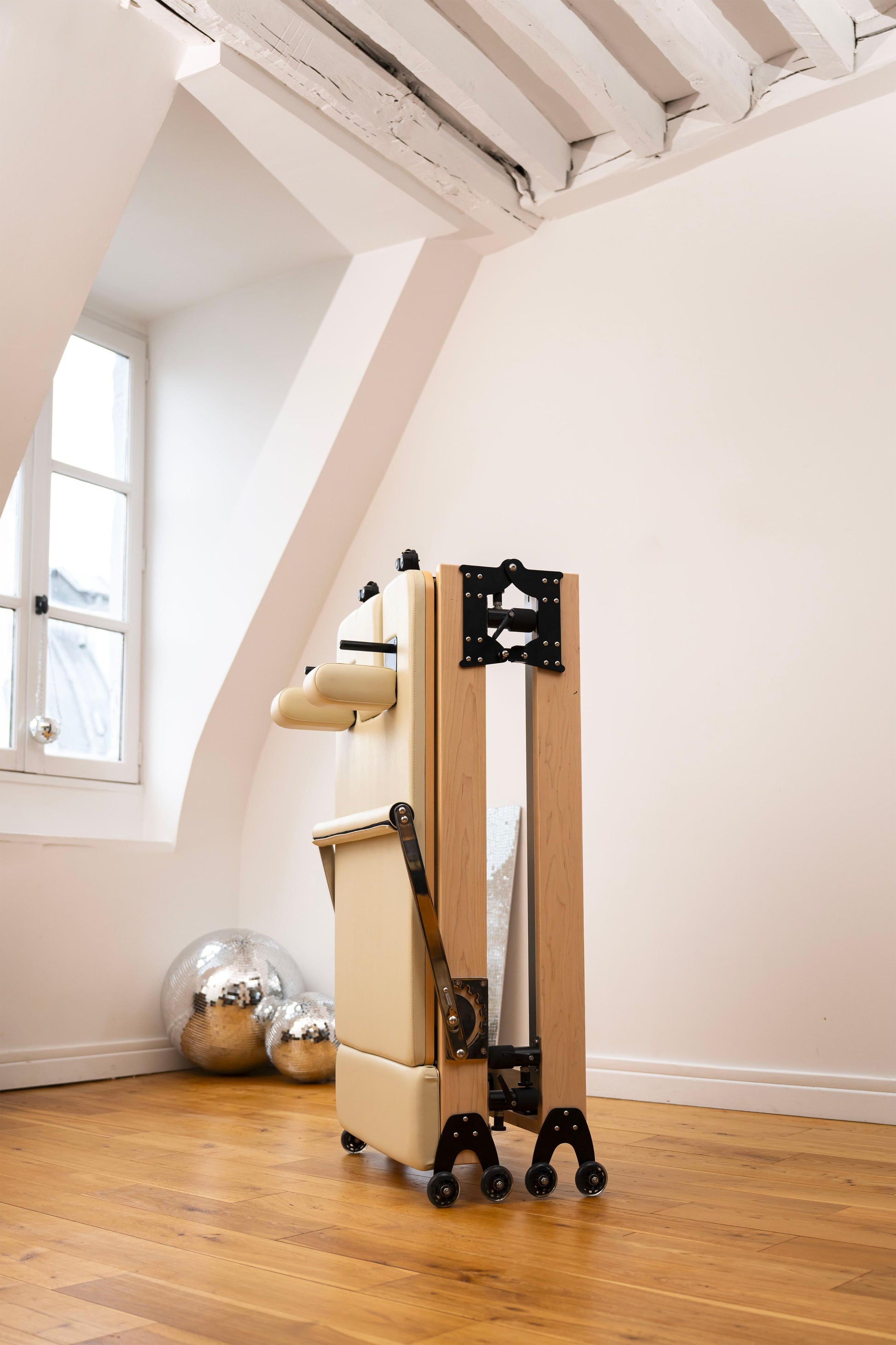 Notre Reformer pliant en bois d’érable incarne l’équilibre parfait entre esthétique, performance et responsabilité.
